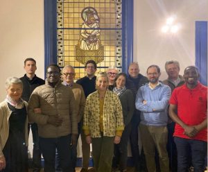 Photo : Chantal Maurice, Père Serge Aimé N’Do, Béatrice Rémy, Juliette Lepoutre, Yann Selosse, Francis Jiokeng, Père Hadrien Mangin, Loïc Aubrée, Charles Midol, Monique Aubrée, Aymeric Lepoutre, Père Benoist de Sinéty (curé),